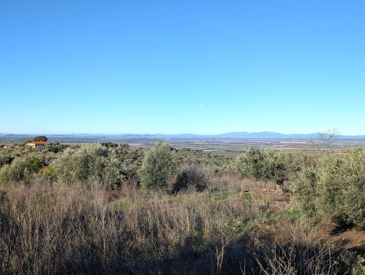 Salimos sobre el mediodía y en apenas quince minutos llegamos al embalse de Orellana. Es uno de los grandes embalses de Extremadura, enorme, con playas artificiales y fama de tener una de las pocas banderas azules de interior de España. Nosotros aparcamos en uno de los parkings de playa, bajamos a echar un vistazo y poco más, porque desde allí el agua se intuye más de lo que se ve. Aun así el sitio tiene algo relajante, aunque hoy no era día de chapuzones ni de patas mojadas.