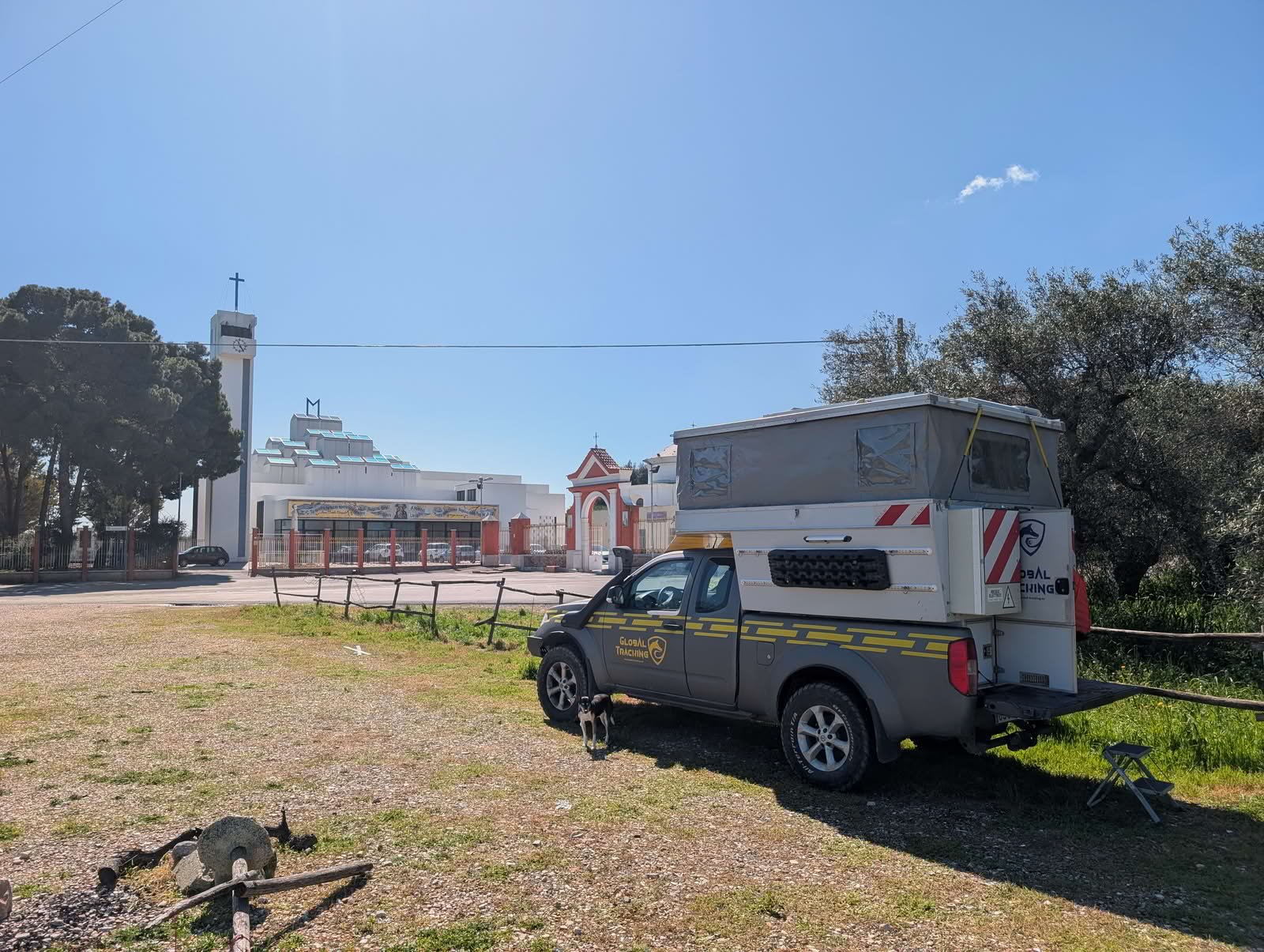 Además, la zona tampoco ayuda mucho. Mucho campo de cultivo, todo bastante abierto, pero poco sitio claro donde decir “aquí sí”. Así que seguimos tirando de mapa y encontramos un sitio que pintaba bien: el aparcamiento del santuario della Madre di Dio Incoronata di Foggia.