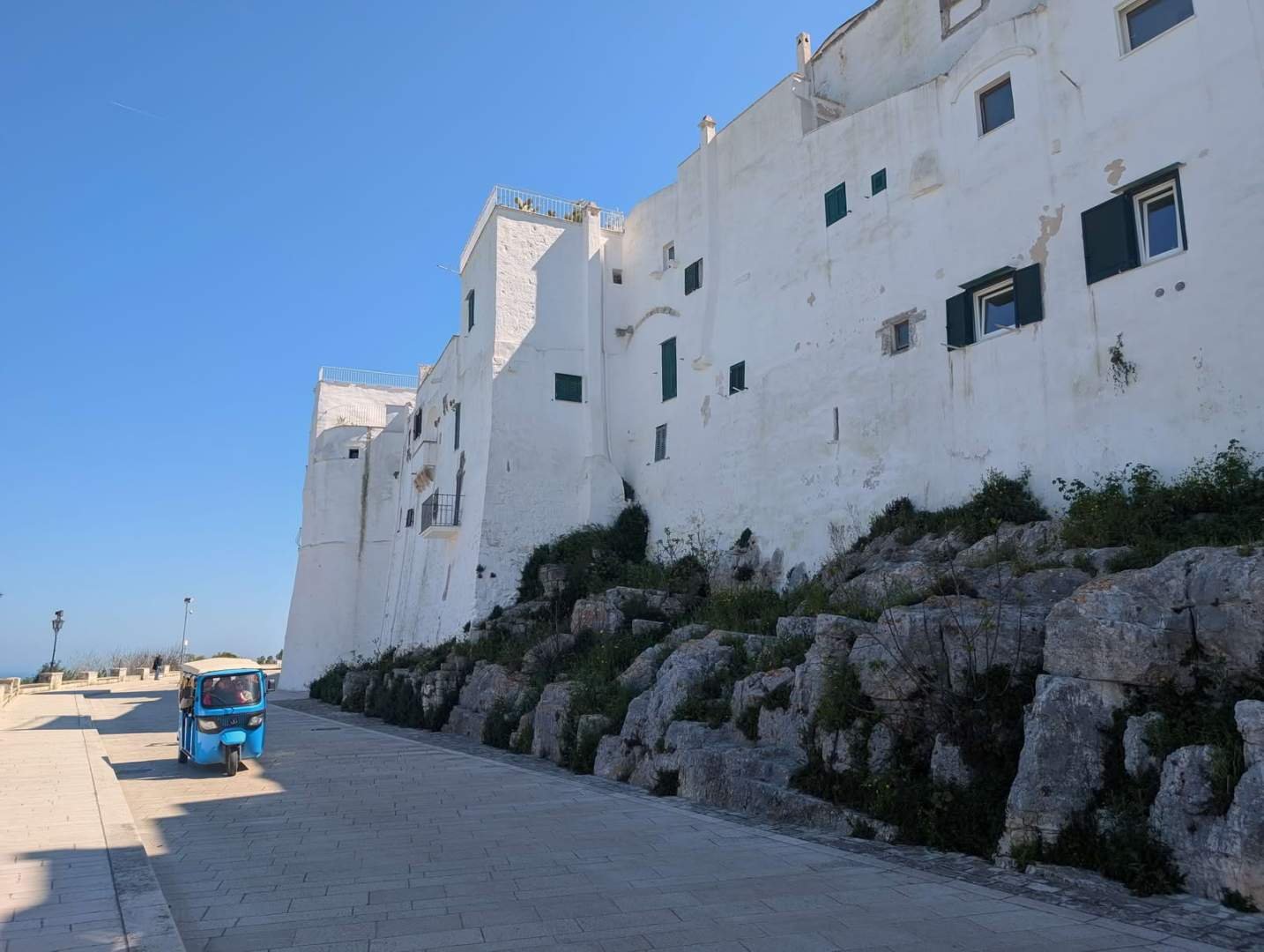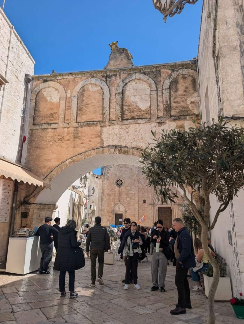 Ostuni es de esos pueblos que se ven desde lejos y ya sabes que va a ser bonito. Todo blanco, en lo alto, con murallas y calles que suben y bajan. Desde fuera parece tranquilo, pero dentro… dentro había más gente que en un parque lleno de pelotas nuevas.