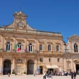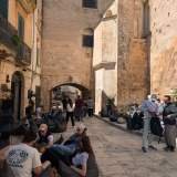 Entramos al centro y aquello estaba a rebosar. Mucho más que ayer en Polignano a Mare. Calles estrechas, tiendas de souvenirs, restaurantes, gente por todas partes… avanzar era lento, como cuando intentas caminar entre palomas y ninguna se quiere apartar. Aun así, el sitio tiene su gracia. El blanco de las casas, las vistas, las callejuelas… merece la pena.