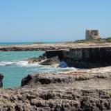Después volvimos al coche y bajamos hacia la costa, hasta Torre Pozzella. Es una zona natural con varias calitas y una torre de piedra vigilándolo todo. El aparcamiento estaba bien y, lo más importante, no había señales prohibiendo campers. Había algunas más, así que buen ambiente.