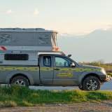 Cuando el sol empezó a bajar, volvimos hacia a la cámper. Aquí la costa mira al este, así que la puesta es sobre tierra, lo cual es un poco raro, pero tiene su punto. Detrás de la playa hay una zona natural tipo pantano, justo al lado del aparcamiento. Resultado: mosquitos. Muchos. Más de los que uno puede gestionar con dignidad. Tuvimos que refugiarnos en la camper bastante rápido, porque aquello era peor que intentar dormir con una mosca en la oreja. Pero bueno, dentro estamos bien. El sitio es tranquilo, hay espacio y la playa ahí delante lo compensa todo. Así que aquí nos quedamos a dormir. Arena, mosquitos y Monte Olimpo de fondo. No es mal combo.