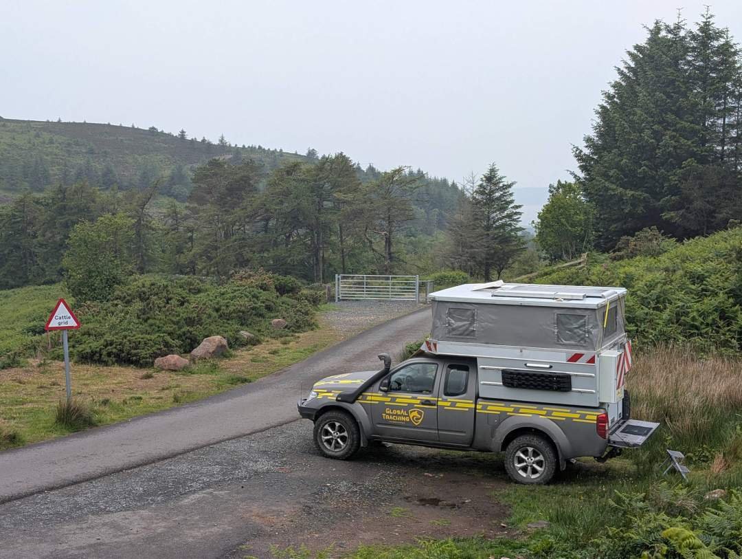 Op het eiland Arran werden we op een heel Schotse manier verwelkomd: regen, wind en nog meer regen. We reden een twintigtal minuten naar het zuiden en vonden een parkeerplaats waar we de nacht konden doorbrengen. Misschien is er uitzicht op zee, maar met de mist zien we alleen een uniforme grijze kleur die net zo goed de zee kan zijn... of een muur.