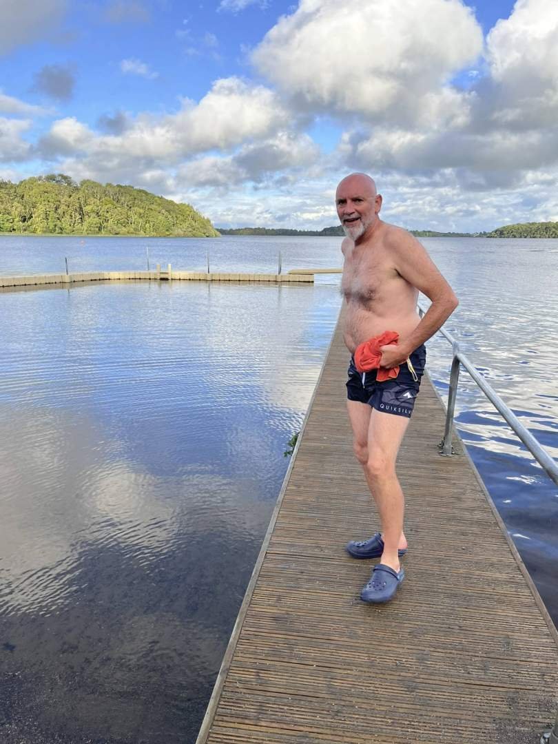 Veertig minuten later kwamen we aan bij Lough Key. Oh, dit was alweer iets anders! Het meer leek wel uit een sprookje te komen: groot, met eilandjes verspreid alsof iemand een handvol stenen in het water had gegooid en ze bleven drijven. Sommige dappere mensen zwommen alsof er niets aan de hand was. En natuurlijk kon Papi Edu niet achterblijven. Hij sprong in het water. Ik keek vanaf de oever en dacht: "Hij is gek, hij komt vast terug als een ijsblokje". Maar nee, hij zwom vijftien minuten als een gepensioneerde dolfijn.