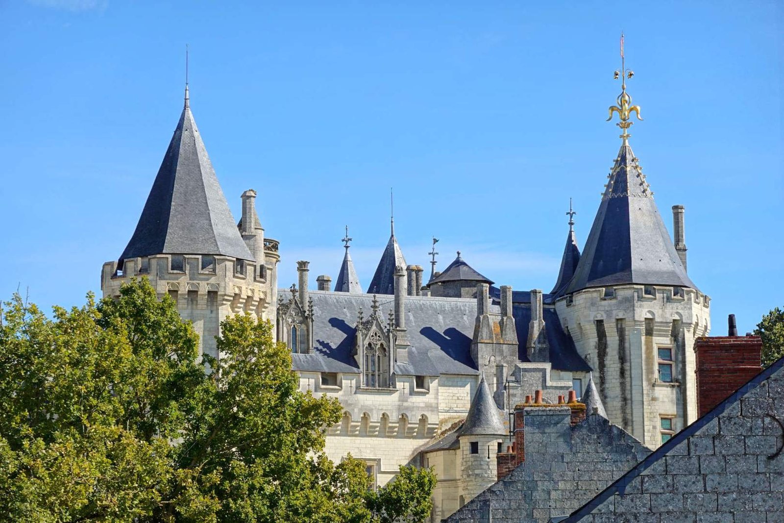 En toen... trappen. Veel. Mijn papa besloot dat het kasteel van Saumur niet alleen omhoog zou gaan. Dus hup, omhoog. Ik, met mijn vier all-terrain poten, prima; hij, met zijn twee vibrerende mensenbenen, langzamer. Maar toen we boven aankwamen: wow vermenigvuldigd met duizend! Het kasteel is alsof iemand om een sprookjeskasteel per middeleeuwse catalogus heeft gevraagd. Spitse torens, muren, tuinen en een uitzicht op de Loire waar je hertog van de reizende hondjes wilt worden. We gingen niet naar binnen (ik denk dat het niet kan of misschien was het omdat we niet wilden betalen, ehm), maar we liepen rond de buitenkant alsof we vestingwerken inspecteerden.