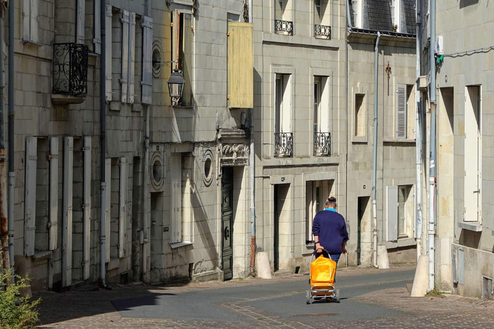 Toen weer auto. We passeerden Montsoreau, dat eruitzag als een ansichtkaart, maar we remden niet. We parkeerden in Candes-Saint-Martin en weer een wandeling. Het dorp is prachtig, pretentieloos middeleeuws en vol hoekjes en gaatjes om te snuffelen. We gingen omhoog naar het panoramische uitkijkpunt via een steil pad dat leek te zijn ontworpen door geiten met een roeping als klimmers. Daarboven is een halve toren... letterlijk. Ze noemen het de "Tour de la Herpinière", maar het lijkt de helft van wat het was, alsof iemand de rest heeft meegenomen bij een verhuizing. Vandaar leken de rivier en de huizen op een maquette.