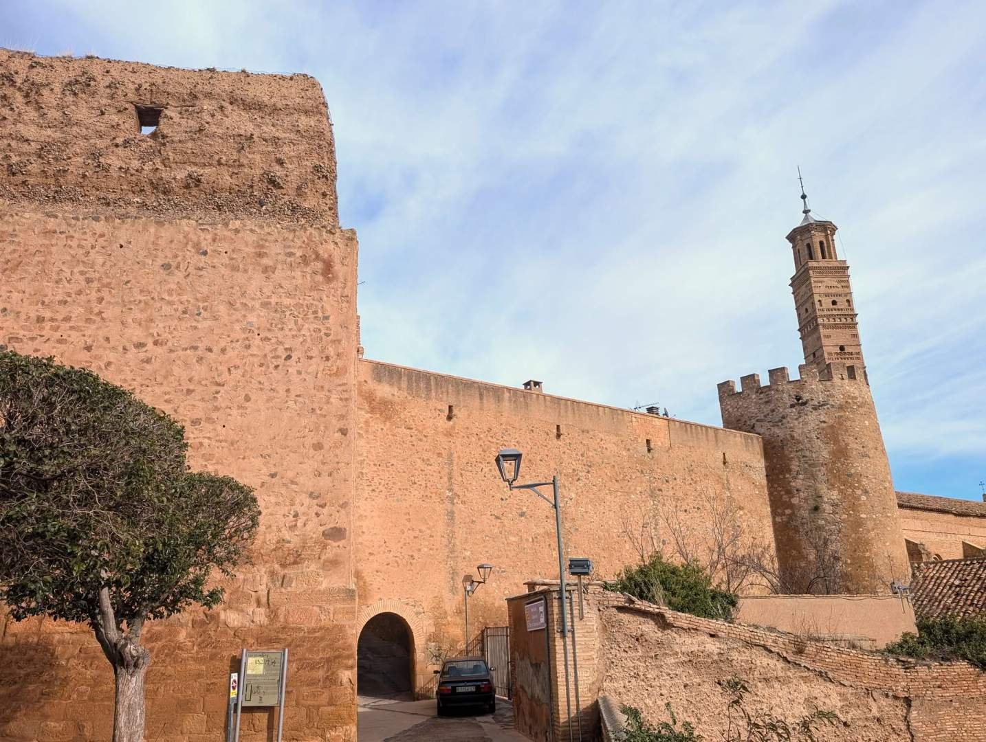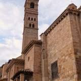 Tarazona is een kleine maar erg mooie stad, met die Italiaanse uitstraling die Edu zegt en die ik vertaal als smalle straatjes, gevels met karakter en veel interessante hoeken om aan te snuffelen. We wandelden en het eerste wat we zagen was de kathedraal van Santa María de la Huerta, een juweel dat gotiek en Mudéjar op een zeer elegante manier combineert. Het is een andere kathedraal, met veel baksteen, keramiek en details die je niet verwacht, en bovendien is hij in de stad ingeklemd alsof hij altijd al precies wist waar hij zich moest vestigen.