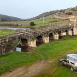 We voelden ons heel goed op de plek. Echt rustig. Geen verkeer, geen stemmen, geen haast. Dus vertrokken we nog langzamer dan normaal. Ontbijt zonder klok, een korte wandeling in de omgeving en ik controleerde of alles nog op zijn plek stond, wat nooit kwaad kan. Voordat we met de auto vertrokken, maakten we een korte wandeling over de Romaanse brug. De brug kruist de rivier de Almonte en dateert uit de zeventiende eeuw. Van stevig steen, met elegante bogen en die serieuze uitstraling van iemand die veel heeft zien gebeuren en het niet hoeft te vertellen. Ik vond het mooi. Heel erg.