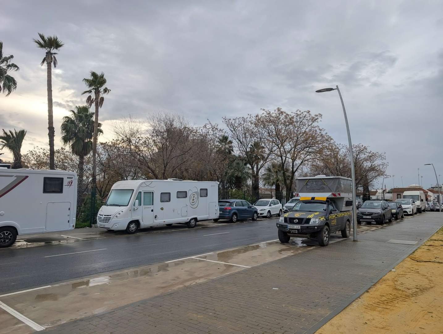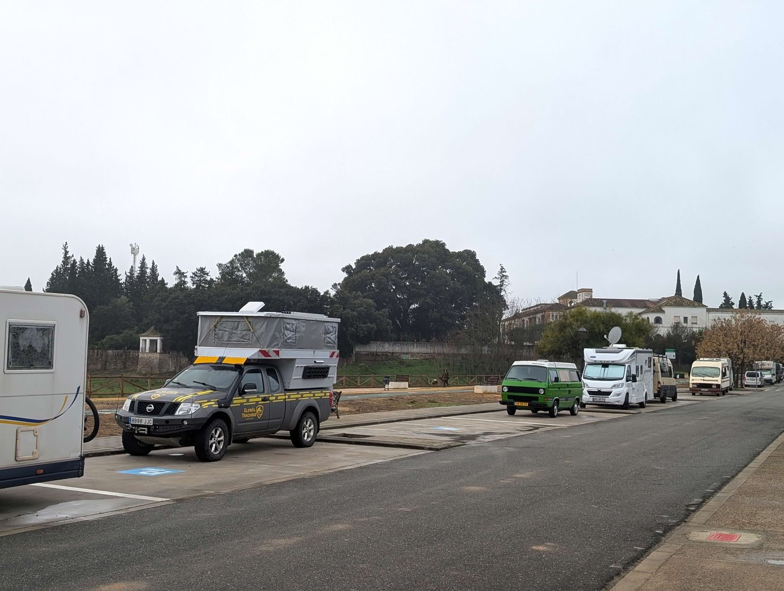 Met de hydraulische plicht vervuld, zetten we koers naar het camperplaats van Castilleja de Guzmán. Dit keer wel, de officiële parkeerplaats. Bij aankomst leek het een vergadering van de Verenigde Naties op wielen. Duitse campers, Nederlandse, een paar Engelse, Franse, Italiaanse. Het scheelde niet veel of iemand zou vlaggetjes tevoorschijn halen. Het was behoorlijk vol, maar er was een perfecte plek voor ons. Alsof hij op ons wachtte.