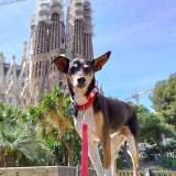 posando delante de la Sagrada Familia
