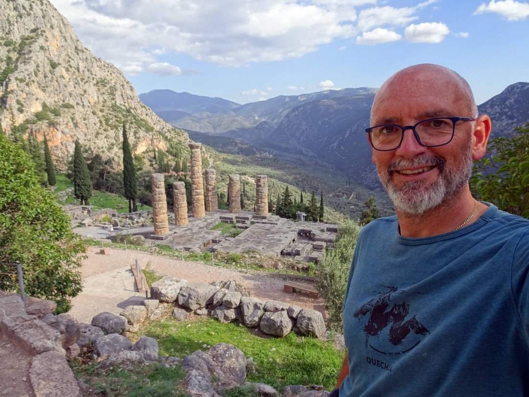 En Delfos, aparcamos en un descampado cerca del sitio arqueológico. Y hablando de eso, ¿sabéis qué es Delfos? En griego, se llama Delphi, y es un lugar lleno de historia y misterio. Dicen que aquí se encuentra el ombligo del mundo, y si eso no es algo para presumir, no sé qué lo es. Papi y Tito Joan se aventuraron a visitar el sitio arqueológico y el museo, mientras yo me quedé en la cámper, disfrutando de la comodidad y mi propio espacio (y quizás un poco de siesta).