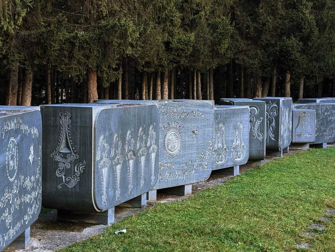 Al final del día llegamos a Berane, donde aparcamos junto a un parque. Las vistas son bonitas, pero hay tanta basura que parece un vertedero. Paseando por el parque (que más bien parece un bosque), descubrimos un monumento impresionante: el Spomenik na Jasikovcu, un cono de piedra negra rodeado de lápidas decoradas con flores talladas. Un hombre joven que hablaba inglés perfecto nos explicó que es un homenaje a los partisanos caídos en la Segunda Guerra Mundial.