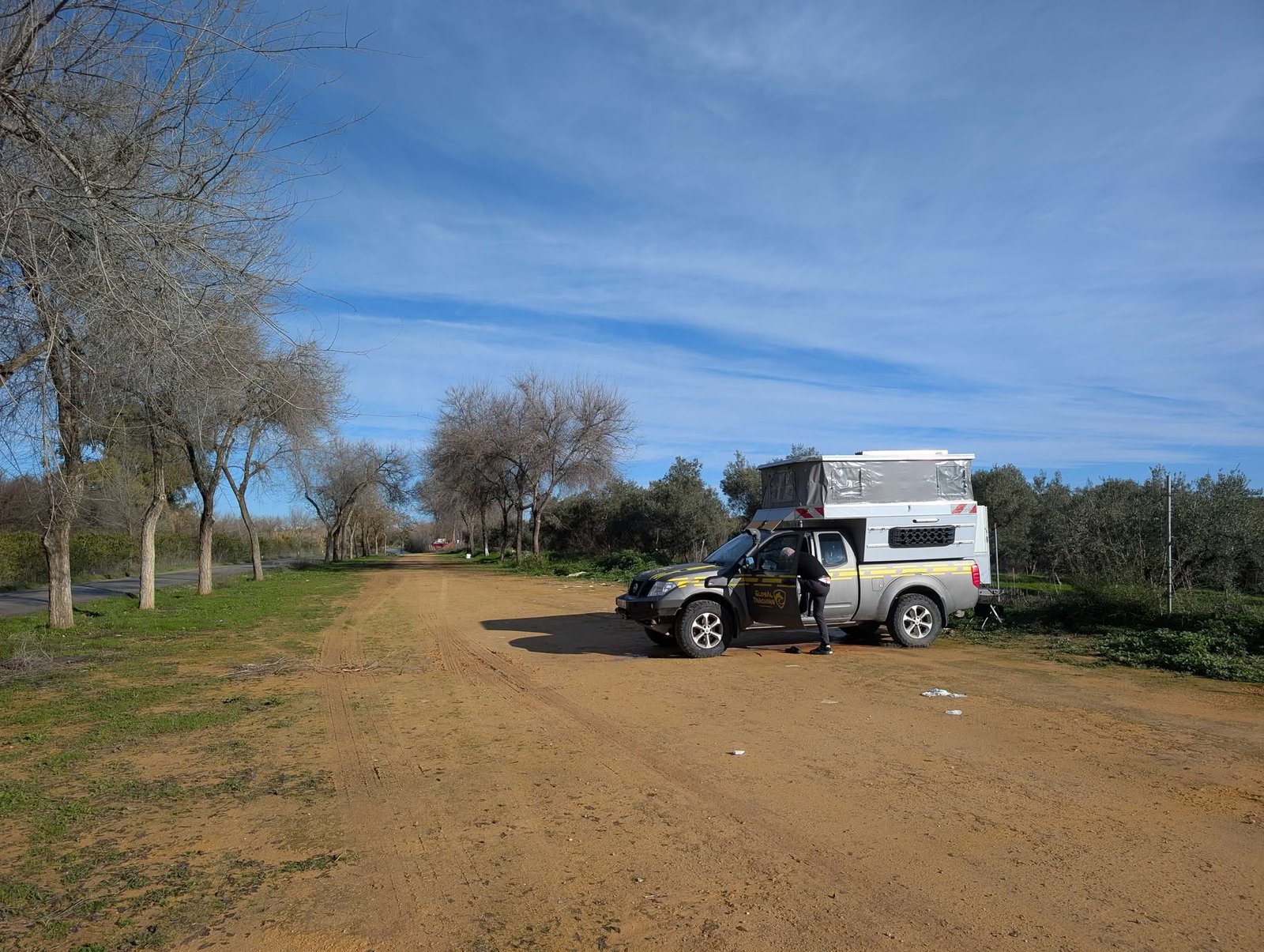 Después de un par de horas de historias y risas, nos despedimos y volvimos a la carretera. En coche hasta Bormujos, compras rápidas en Lidl, de esas que parecen rápidas y nunca lo son. Luego a un aparcamiento de tierra en el campo, entre Gines y Espartinas. Comimos en la camper, en modo pausa vital.