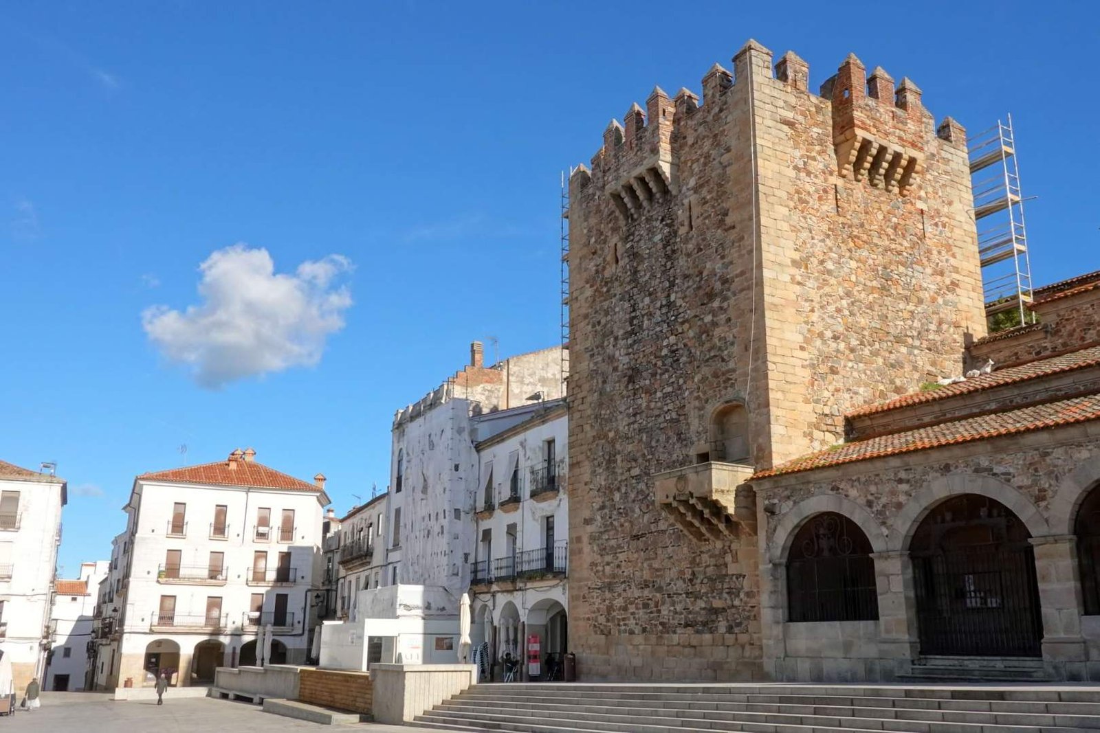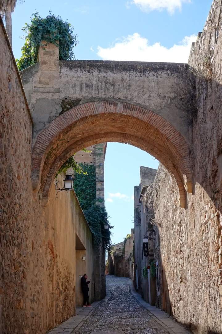 Cruzamos el Arco de la Estrella, que es la puerta más famosa de la ciudad y que se llama así por una virgen que hay encima. Dicen que es el punto más fotografiado. Después la Torre de Bujaco, que fue torre defensiva, prisión y hasta torre del reloj. Vamos, que ha tenido más trabajos que yo trucos para pedir comida.