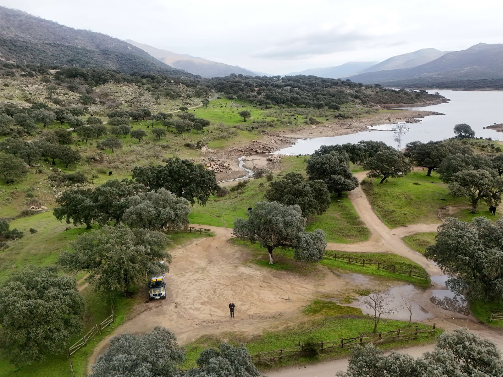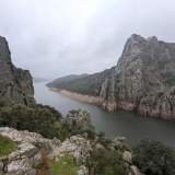 Seguimos hasta el Mirador de la Malavuelta. Otro sitio mítico para ver vuelos circulares, peleas de buitres y postureo de águilas imperiales. Con lluvia, lo que vimos fue niebla, agua y más agua. Muy bonito todo, muy salvaje, pero cero rapaces. La última parada fue el Mirador de la Portilla del Tiétar, donde otras veces hemos visto auténticos atascos de buitres sobre el río. Hoy el Tiétar bajaba fuerte y marrón y los buitres debían de estar todos en casa con bata y zapatillas.