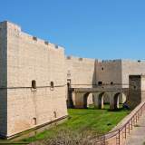 Seguimos callejeando sin rumbo claro, que es como mejor se ven estos sitios. Y llegamos al castillo de Barletta. Está dentro de una especie de parque muy bonito… donde los perros no somos bienvenidos. Muy feo eso. Así que lo vimos desde fuera de la valla. Yo hice lo que pude, que fue mirar con cara de “esto también es mío”, pero no coló.
